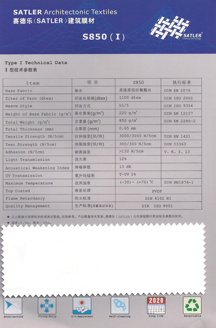 > 德国赛德乐建筑膜材料S850(Ⅰ)