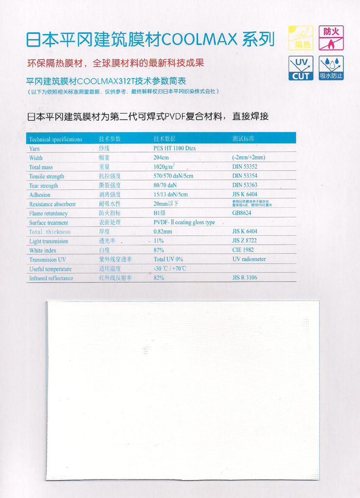 日本平冈膜结构膜材料COOLMAX312T技术参数