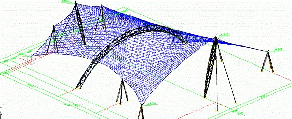 膜结构设计时,应在满足膜面应力平衡状态的条件下,使结构体系保持稳定。还应考虑使用阶段局部膜片破坏或局部索退出工作,以及对不同部位膜单元进行二次张拉或更换对整体结构的影响。