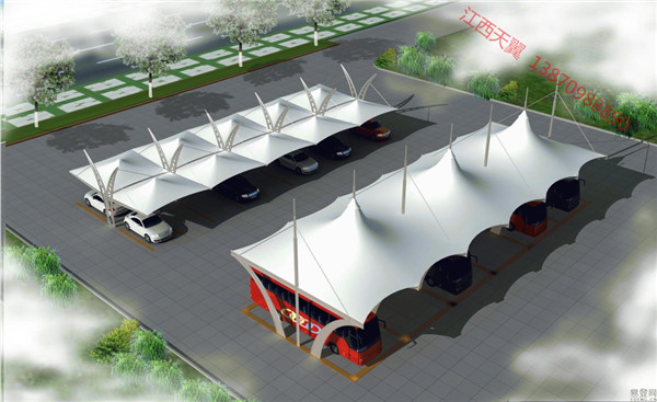 我们设计的机动车膜结构停车棚采用钢结构螺栓铰接组合式结构,打破了传统的膜结构现场制作安装模式;车棚结构表面经粉末喷塑和高耐久抗氧化处理,表面漆艺处理抗氧化能力长达10年以上。焊接口对焊疤和飞溅抛光打磨,再用结构胶密封焊疤口,可以使得焊接处光滑、齐整、无焊流、无焊缝。我们设计的膜结构停车棚已经获得国家专利,专利号:B62J137/00(20016.01)。