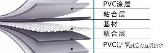 PVC 膜材即PVC膜布(PVC-Coated Polyester),一般是指由聚酯纤维编织的布,也就是基布,然后在上面涂上一层PVC保护法膜。