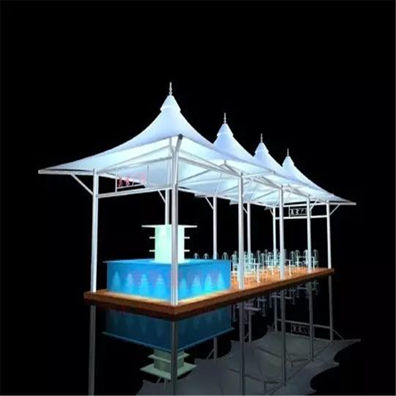 膜结构景观小品,一般既具有简单的实用功能,又具有装饰品的造型艺术特点。它体量较小,因此它既有建筑技术的要求,又含有造型艺术和空间组合上的美感要求。在建筑中既作为实用设施,又作为点缀风景的装饰小品。