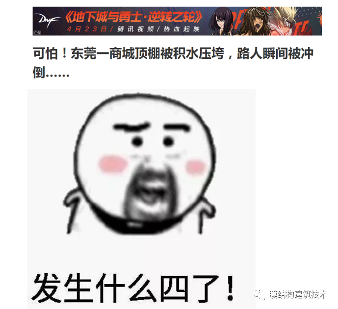 膜结构积水了会怎么过样,我们来看看腾讯新闻的报道: