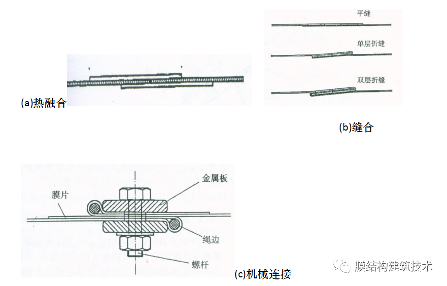 、膜面上主要受力缝的拼接宜采用热融合方法进行连接。