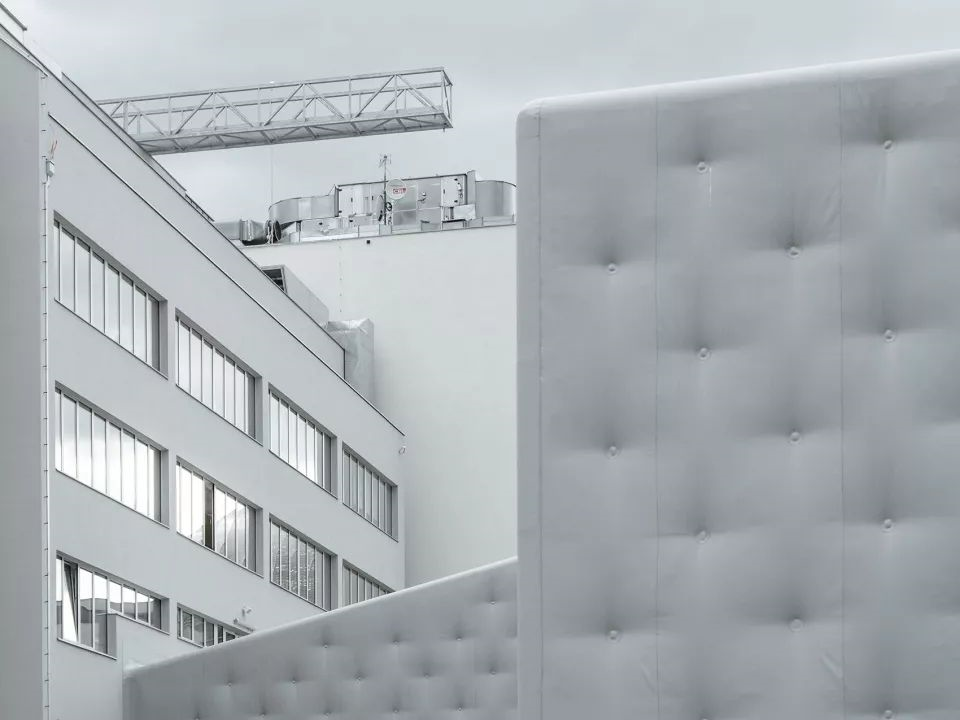 这栋建筑来自于对1970年代原有建筑的更新改造,钢筋混凝土表面穿上一层柔软的立面,塑料薄膜在极端严寒的天气中不会因收缩而撕裂,并且当阳光照射表面温度升高时,也不会失去张力。