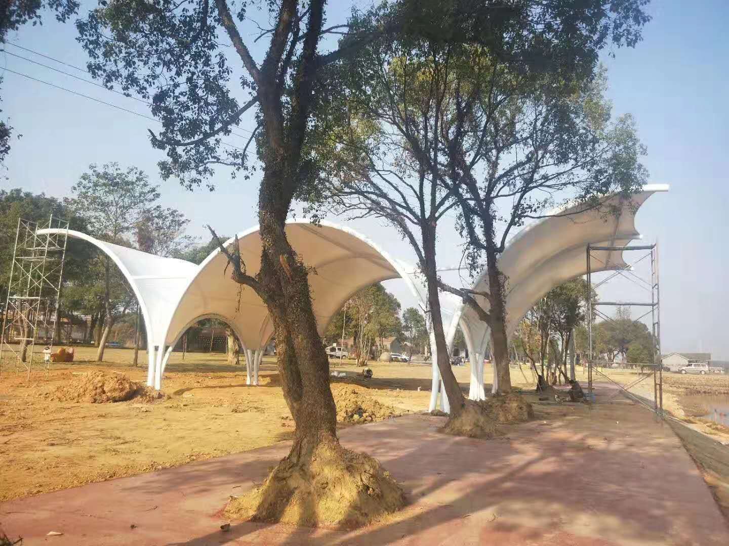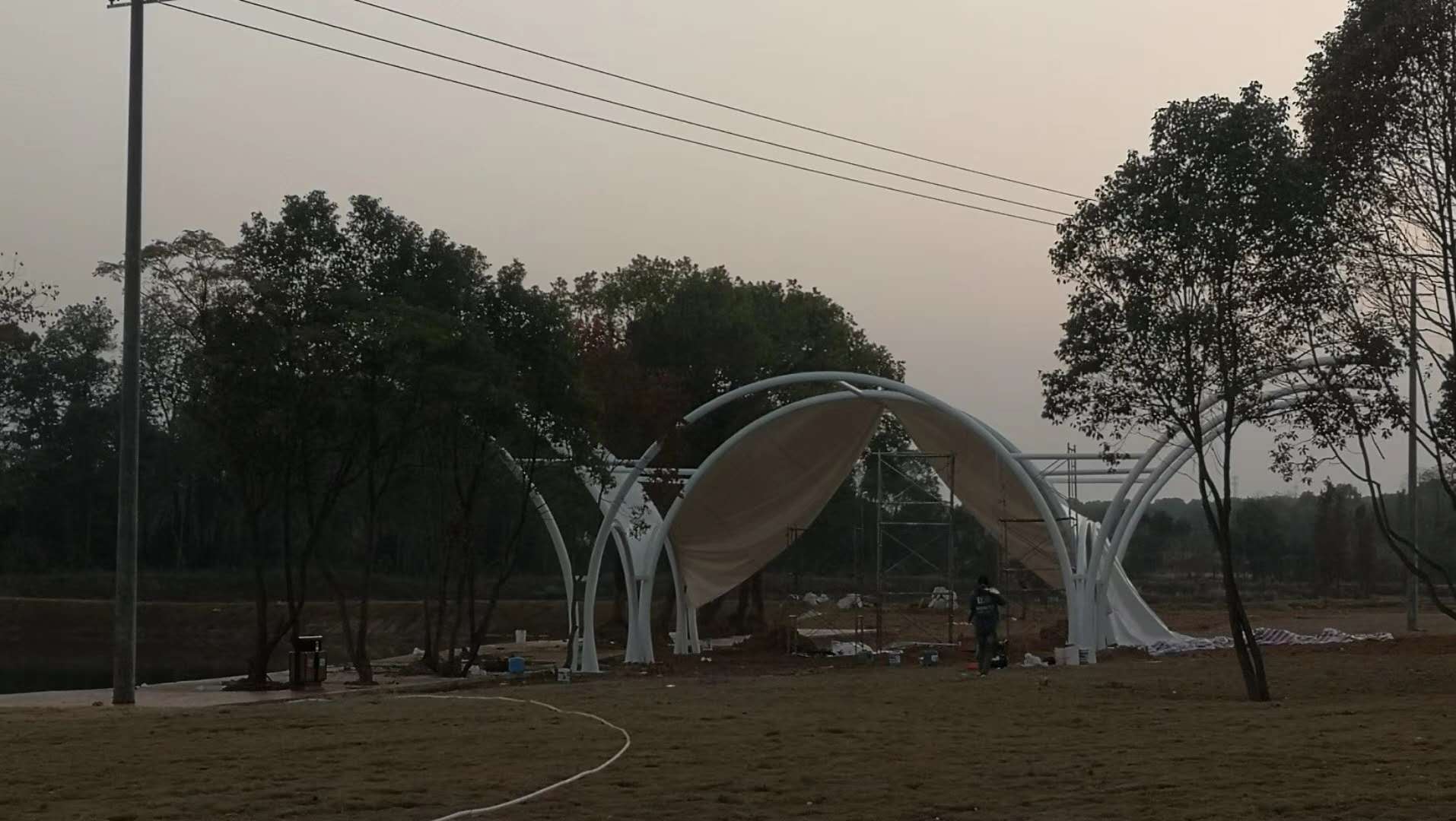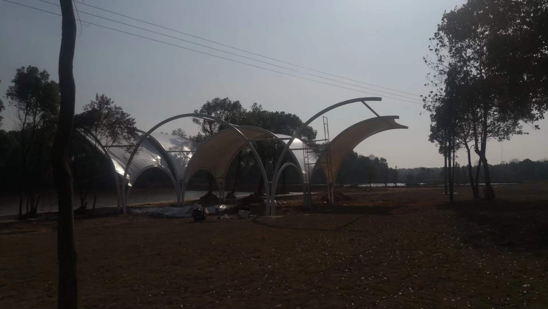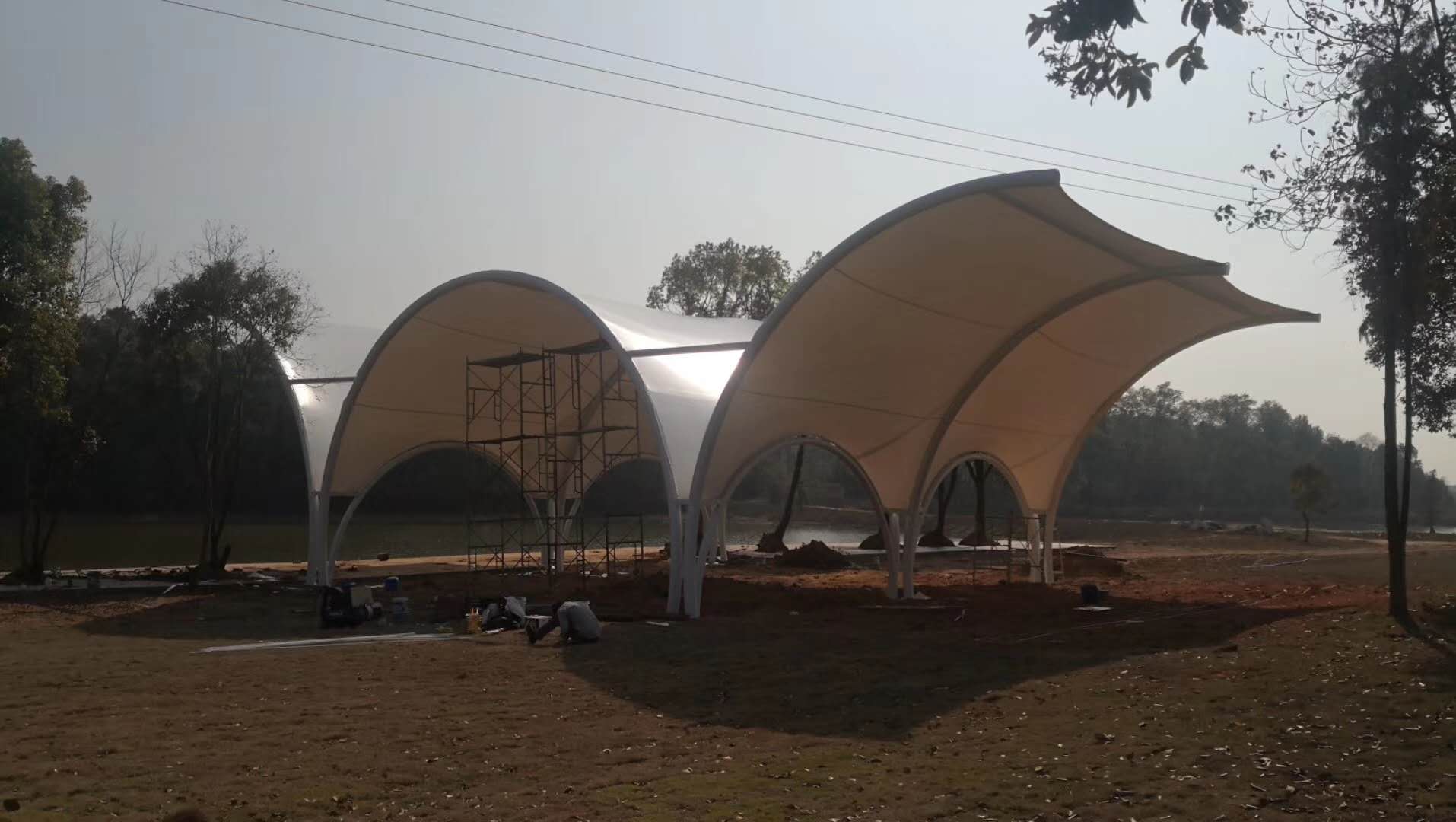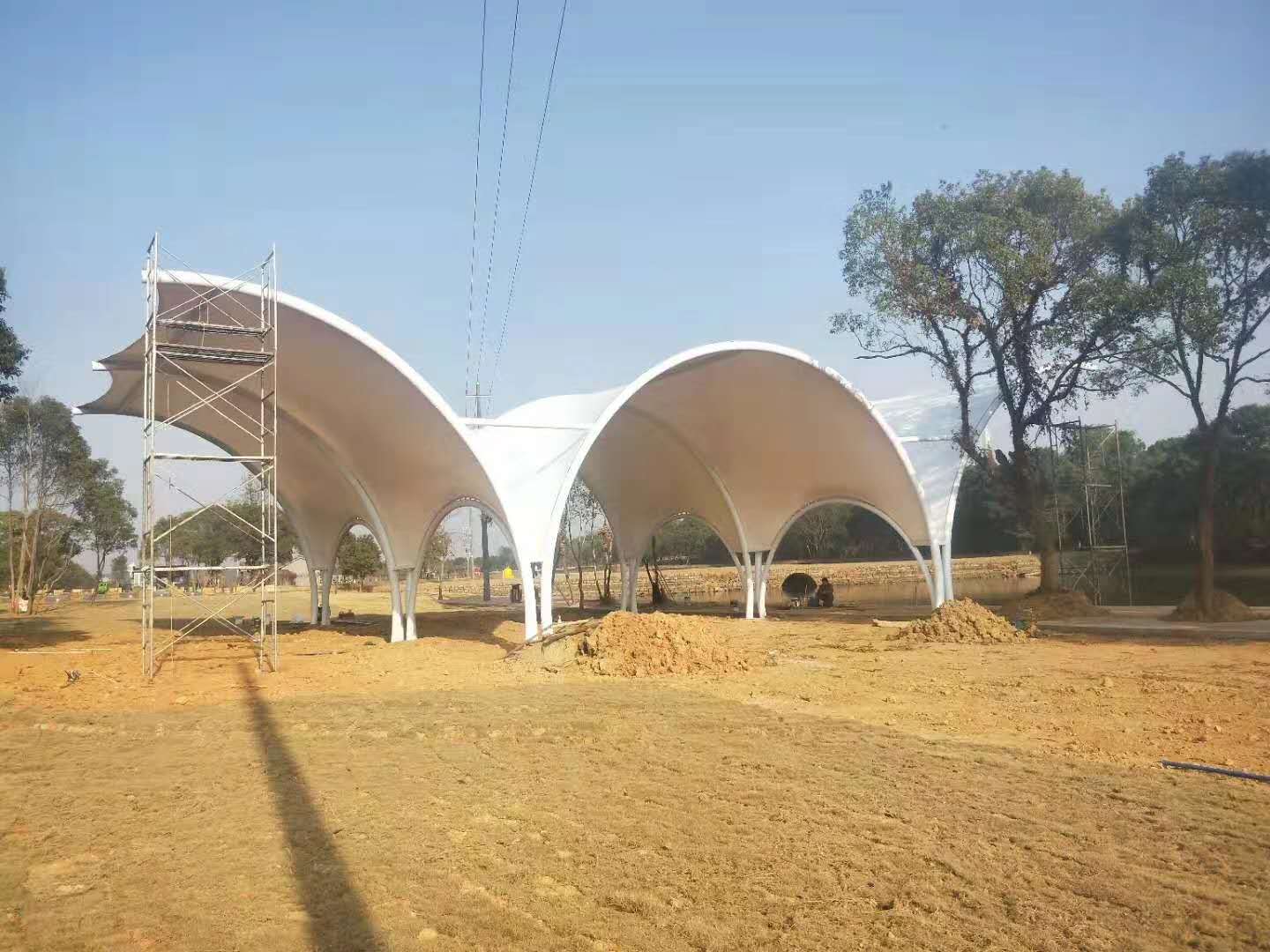高安百峰岭膜结构高尔夫雨棚施工案例