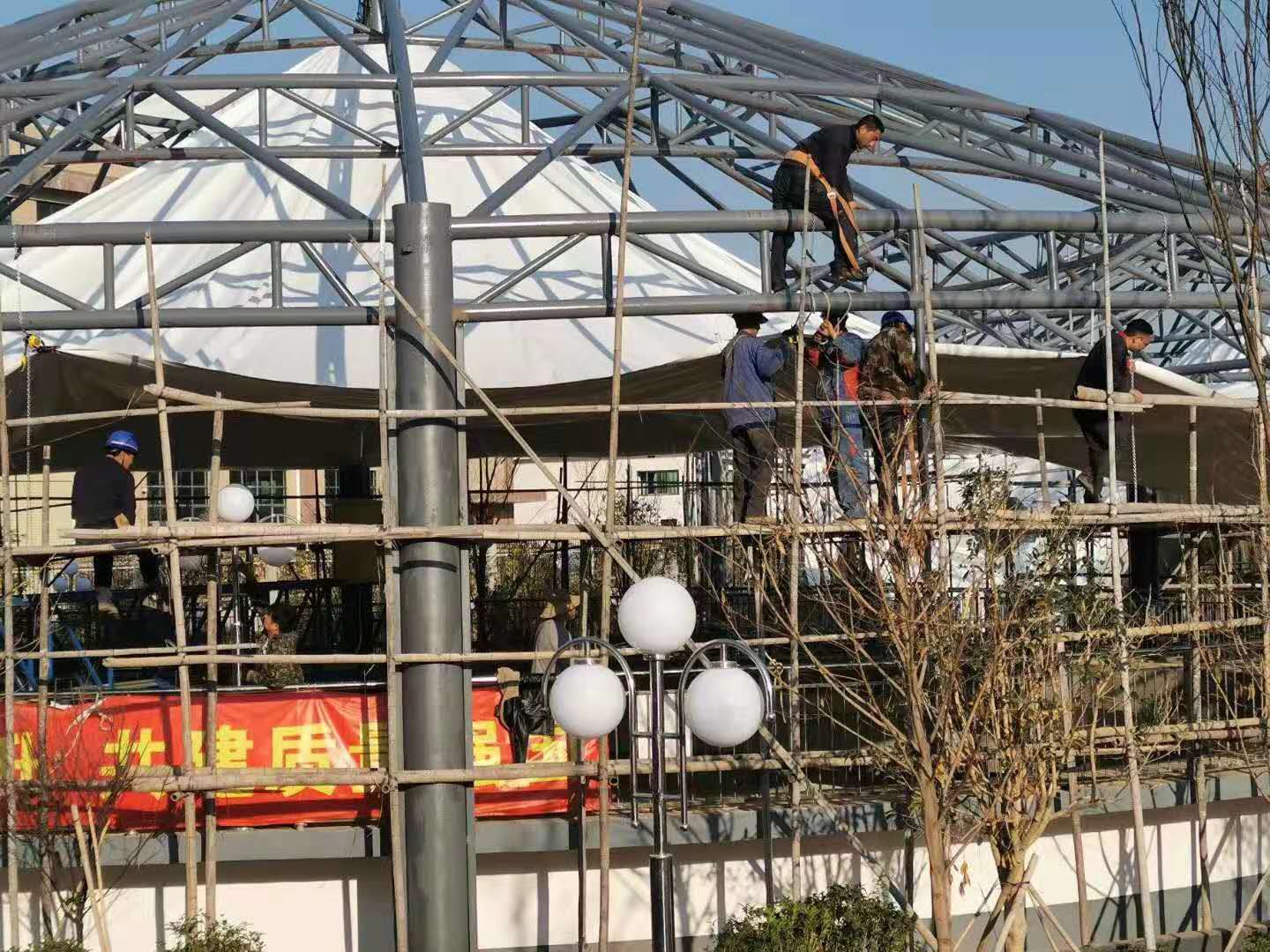 一般2000平米左右的污水池进行反吊膜加盖,安装周期大概在45天左右,若是赶工期,时间更短。想要在短时间内安装好反吊膜,并保证其质量,需要一支经验丰富的反吊膜施工团队,因地制宜的组织施工方案,并严格安装施工方案逐步进行施工。下面天翼膜结构小编为您介绍一下反吊膜安装方法,以便业主进一步了解反吊膜,信任反吊膜。