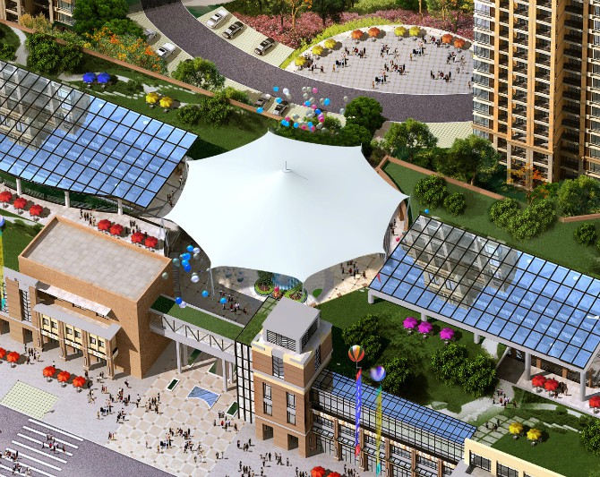 膜结构车棚效果图展示|各种造型膜结构车棚图片样式