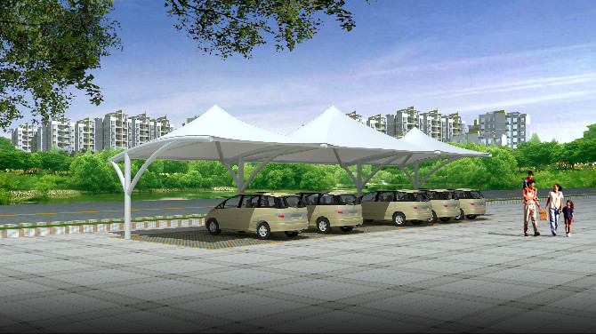 膜结构车棚图片大全|各种样式张拉膜结构车棚图片效果图展示膜结构车棚是现在地上停车场和公园景区以及小区停车首选的停车遮阳棚,膜结构车棚造型样式多,根据不同环境可以定制不同的样式和尺寸,深受广大顾客的青睐,膜结构车棚由钢结构和PVDF膜材组成,除样式多之外,膜结构车棚的线条造型更能与环境搭配相互协调,膜结构车棚工程施工时间短,成本造价低,使用寿命长,优质材料的膜结构车棚使用寿命为15-20年。