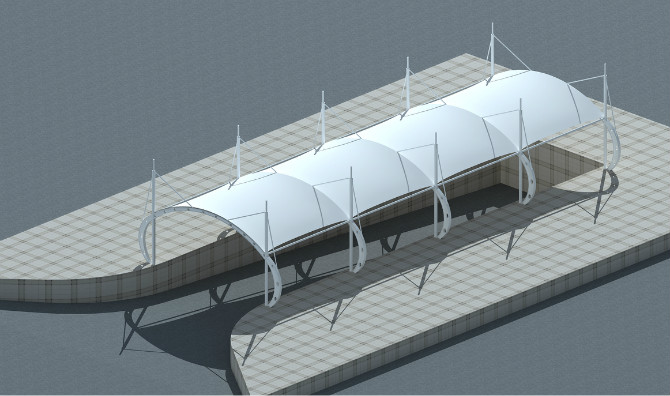 地下车库过道膜结构,地下车库通道张拉膜雨棚效果图