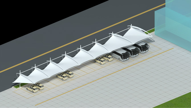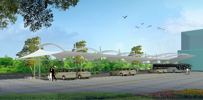 九江膜结构景观车棚,张拉膜景观车棚效果图