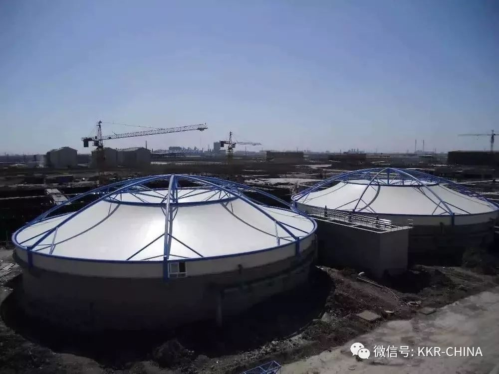 在超大跨度的池体覆盖上,污水池加盖膜结构具有得天独厚的优势。