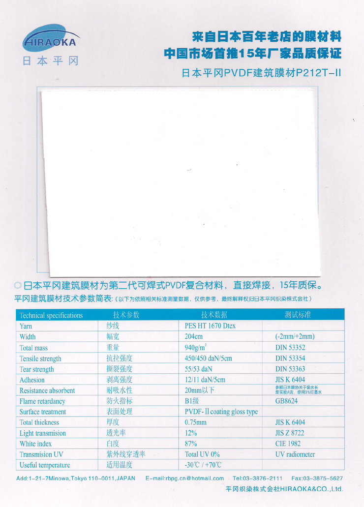 日本平冈膜结构建筑膜材料P212T-Ⅱ